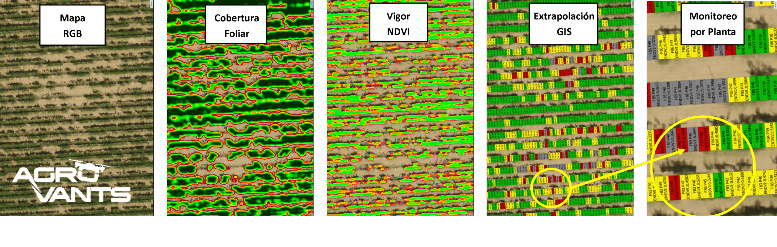 El enfoque de la compañía incluye la adaptación de diferentes índices de vegetación específicos para cada caso, mediante los cuales también pueden realizarse mapas de prescripción variable, que posteriormente son cargados en la memoria de los drones para realizar aplicaciones de dosis variable, adaptadas a diferentes estados de viñedo.