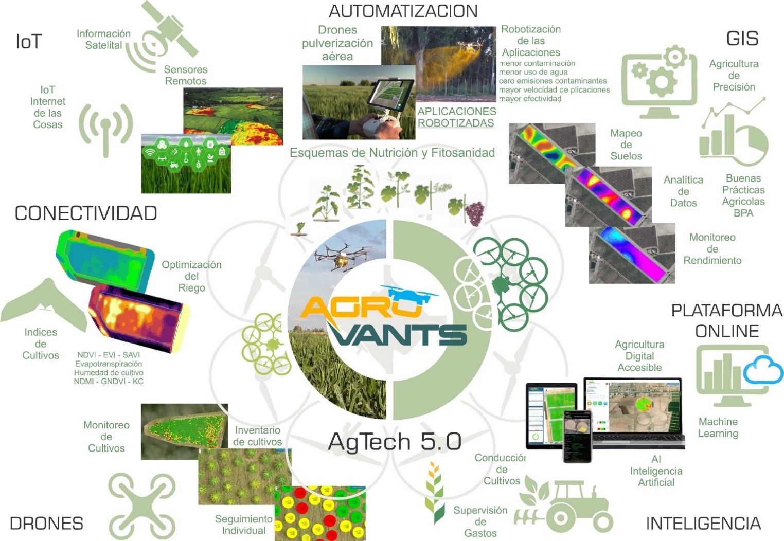 AGROVANTS plantea una solución integral de la AGRICULTURA 5.0, que utiliza drones de última tecnología para aumentar la producción de alimentos, cuidar la salud vegetal y la nutrición de los cultivos.